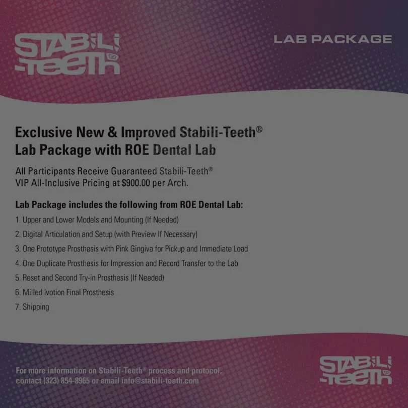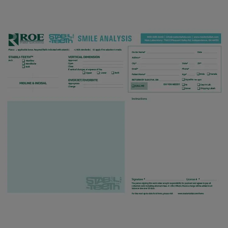 Roe Dental Lab Packages & Info VIP Lab Package DOWNLOAD NOW Choice Lab Package DOWNLOAD NOW The Record Taking Guide of Instructions DOWNLOAD NOW Smile Analysis DOWNLOAD NOW Click HERE to Return to Menu